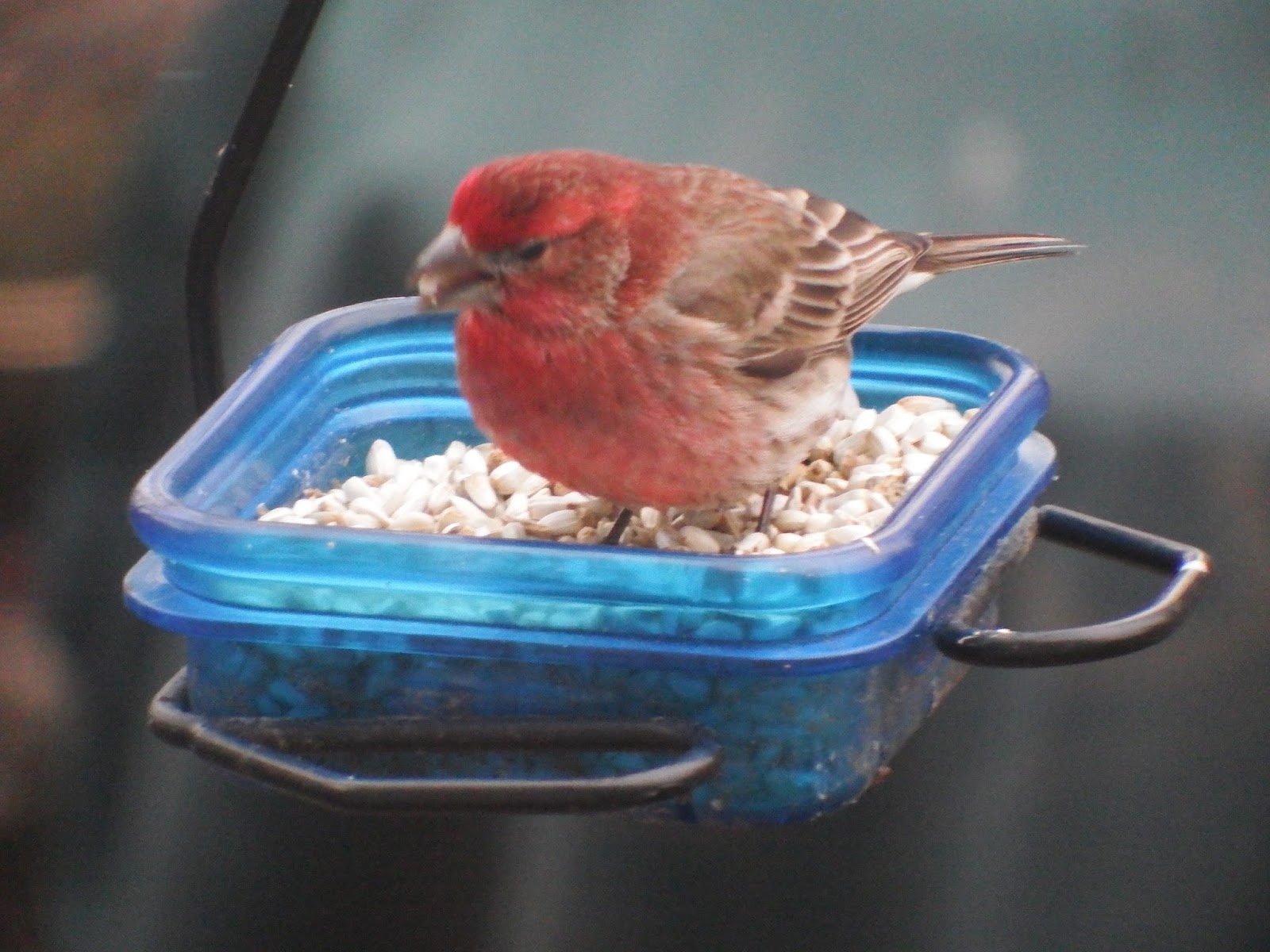 Ilmat taas viilenivät alkuviikon jälkeen sen verran, että on pakkasta. Punavarpusia on tullut syömään reippaasti. Kesäisin niitä ei näe, talvella ne käyvät lintulaudoilla (ymmärrän salmonellavaaran, kiitos!) Koiraat ovat kivan punertavia, naaraat ovat puolestaan ihan tavallisia harmaanruskeita. Olen yrittänyt ottaa selvää, ovatko nämä house finchejä vai purple finchejä eli pihapunavarpusia vaiko tammipunavarpusia. Mutta vaikka kuinka yritän katsoa kuvia ja tunnistaa, en pysty tekemään eroa. No, punavarpusia kuitenkin.